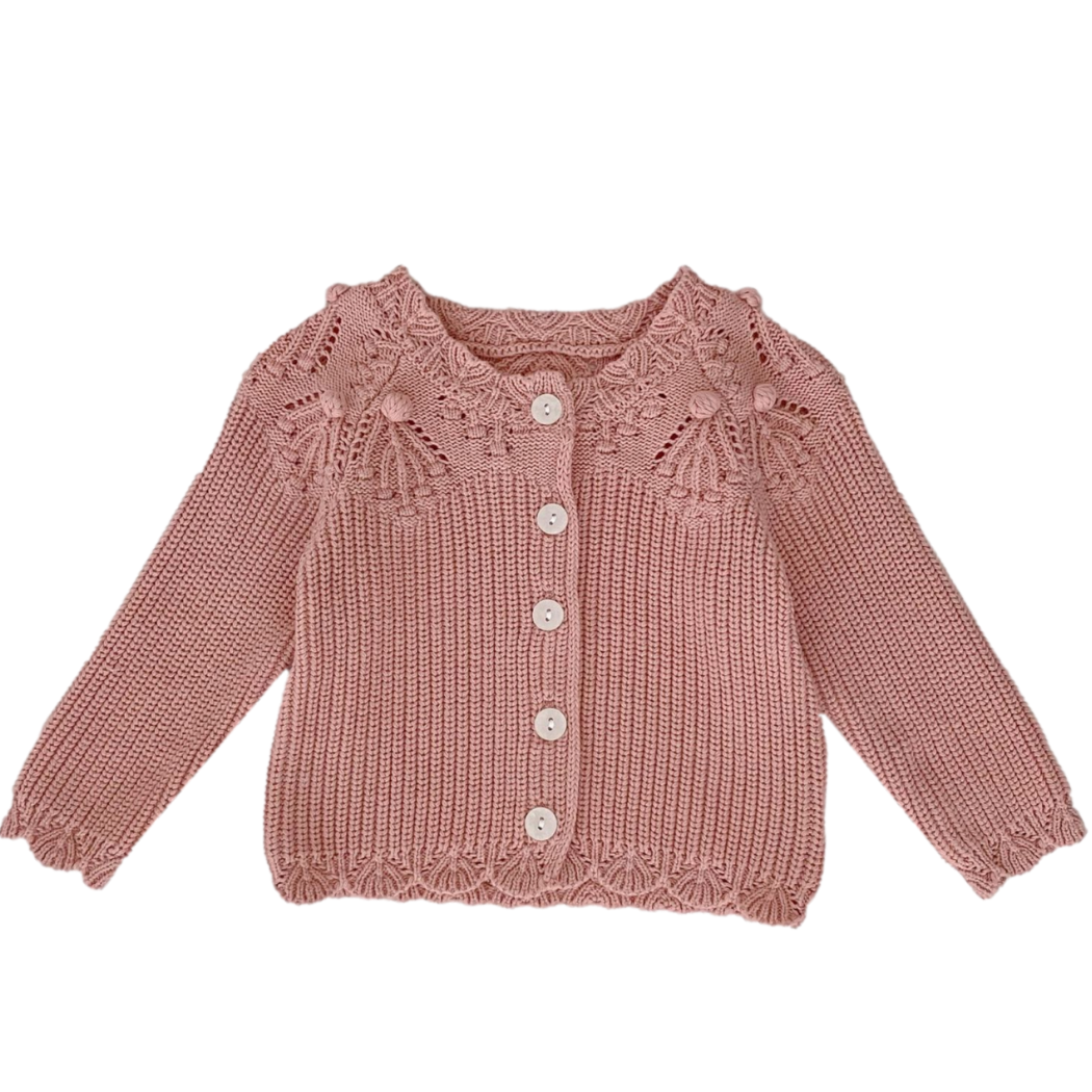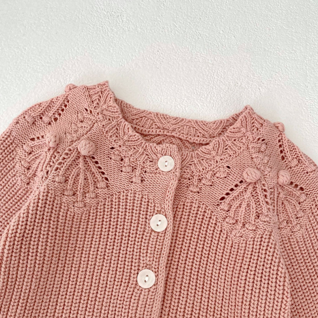 A charming piece crafted with soft textures and romantic details. The Rose Laceleaf Knit Cardigan features intricate openwork knitting and delicate raised accents that bring a graceful vintage touch to any outfit. Its powder rose shade adds warmth and sweetness, making it a lovely layer for cooler days.