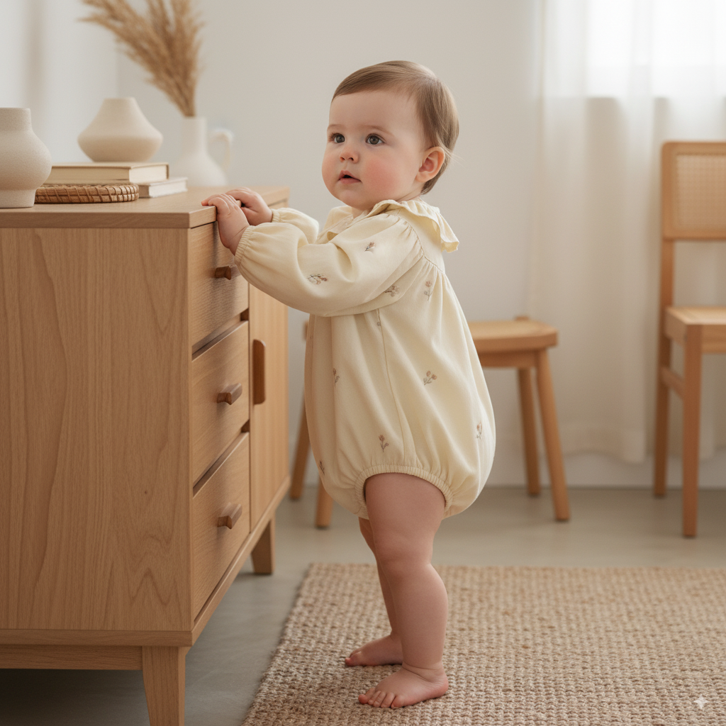 A charming romper with a soft ruffled collar, delicate floral print, and relaxed fit. Combines vintage charm, gentle comfort, and freedom for your little one’s every move